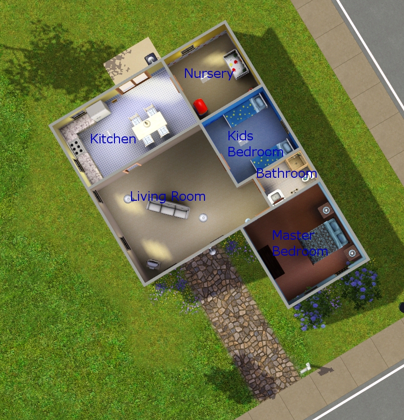 There is nothing really truly special about this lot. It's just a simple 3 bedroom, 1 bathroom starter house for a family of 5 and the price comes in at just under $16.5k so it's cheap enough for a single sim straight out of CAS to afford, yay!! :) I've built this lot at 72 Water Lily Lane in Sunset Valley (2x3).